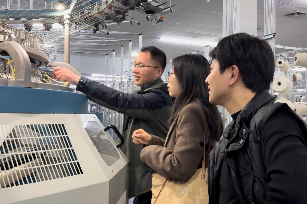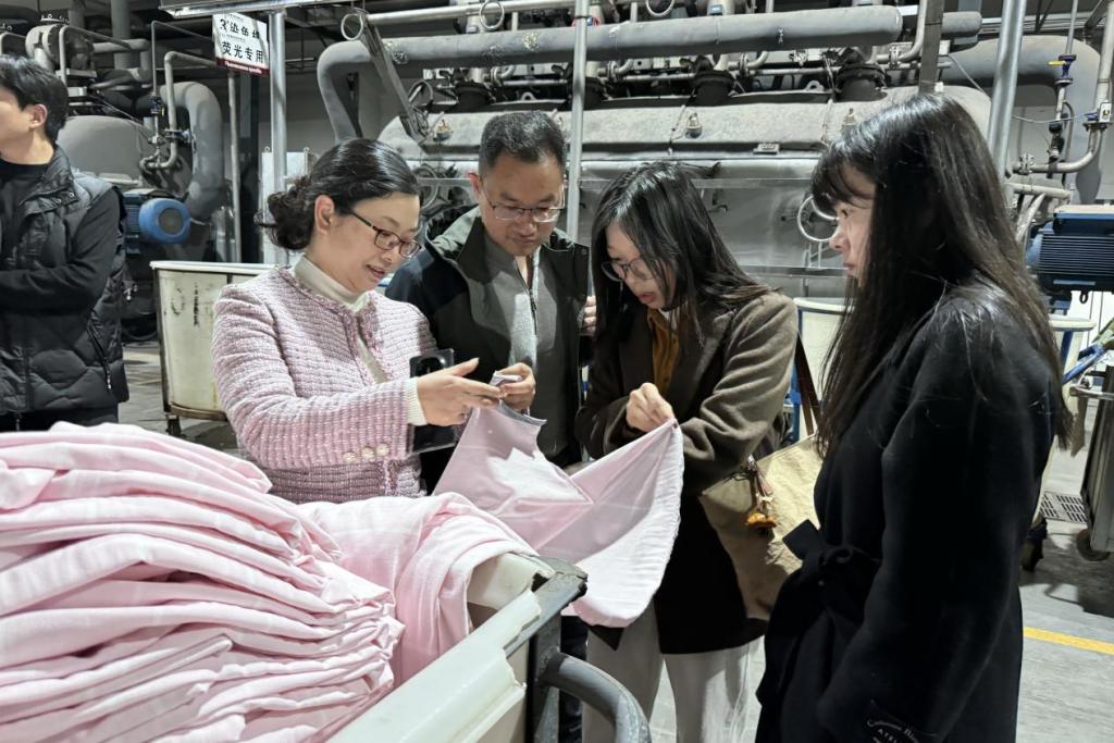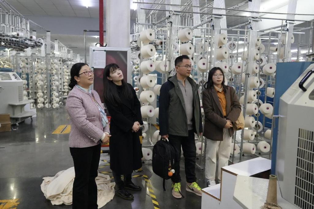 在企业负责人陪同下,纺织服装学院一行参观了生产流程、核心工艺技术及设备应用。教师代表积极学习操作技术,了解市场前景和技术需求,为教学与产业对接提供实践依据。