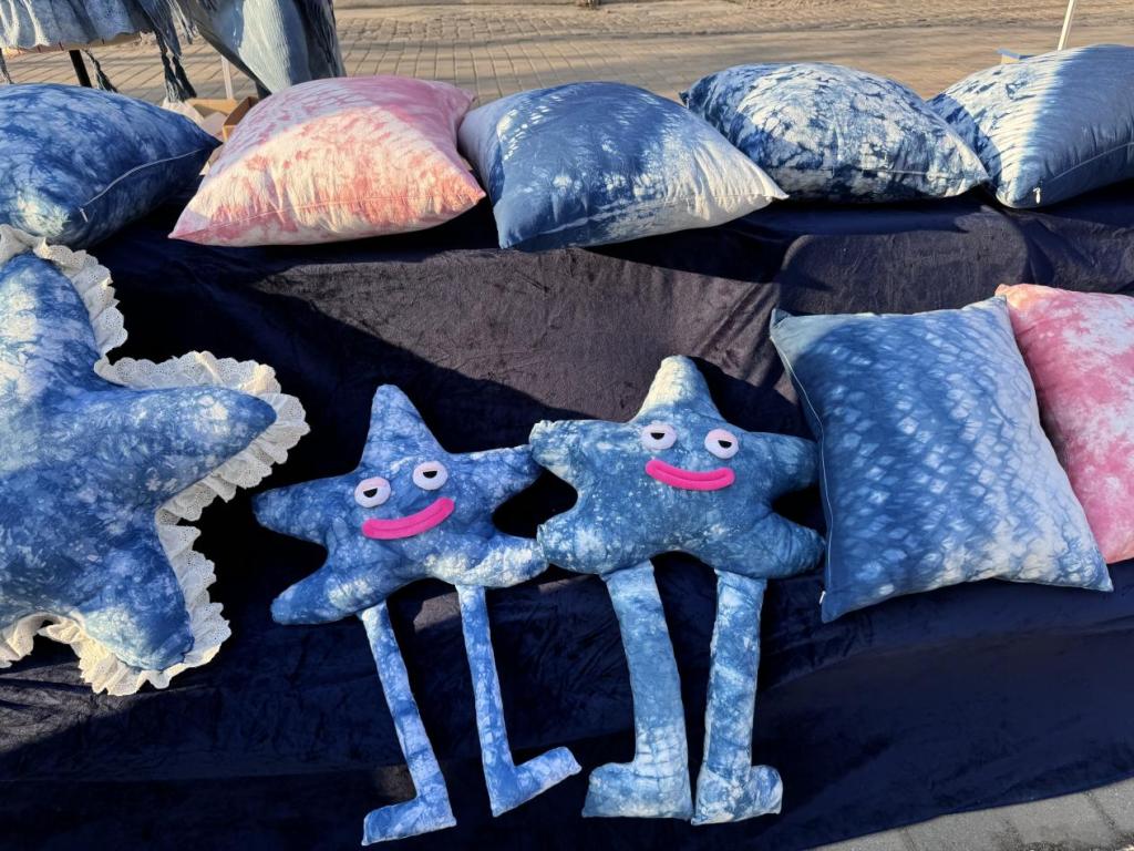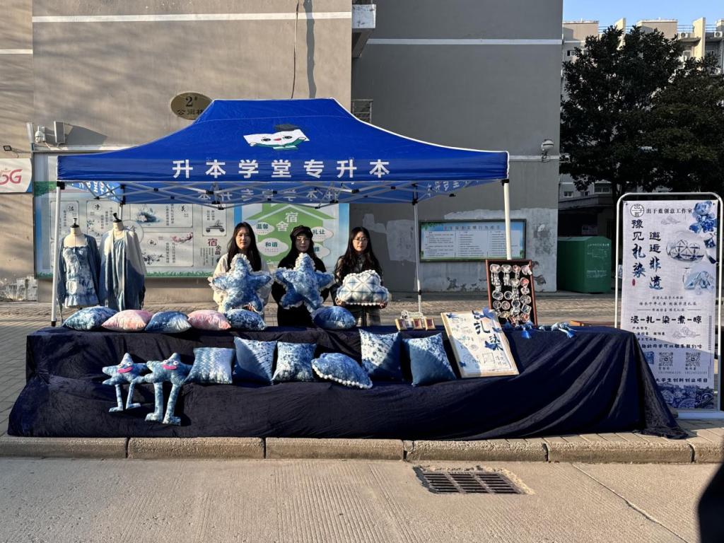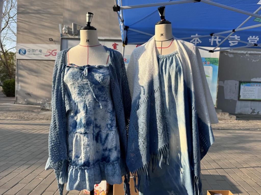 活动现场琳琅满目,展示着将扎染艺术巧妙融入的服饰、家纺及手工艺品,宣传展架上详细介绍了扎染的“浸、扎、染、煮、晾”五道传统工序,使同学们能够直观且深入地了解非遗扎染工艺的独特魅力。