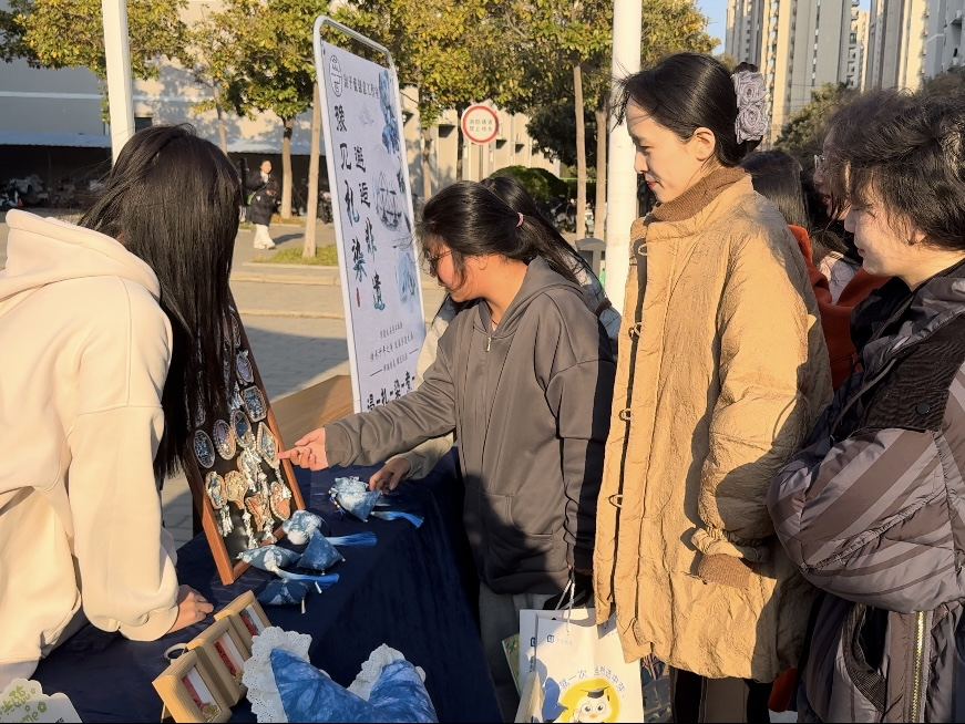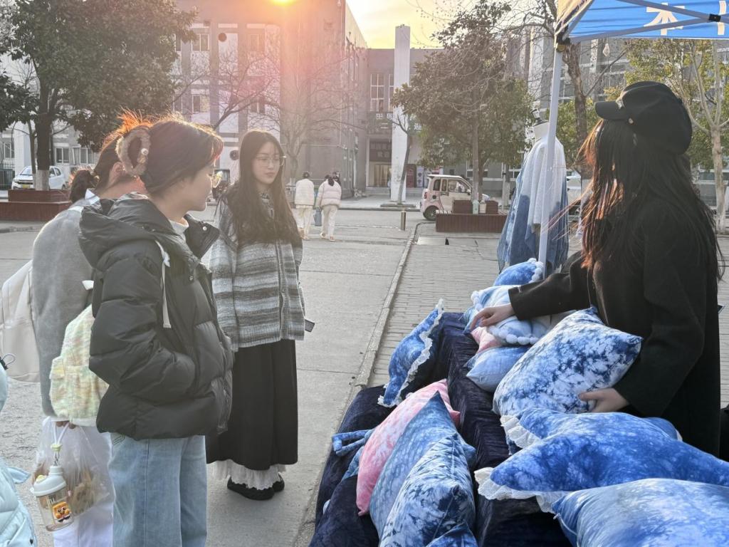 为传承优秀传统文化,促进校园文化多元发展,3月16日,纺织服装学院在学校宿舍楼下举办创意集市活动。