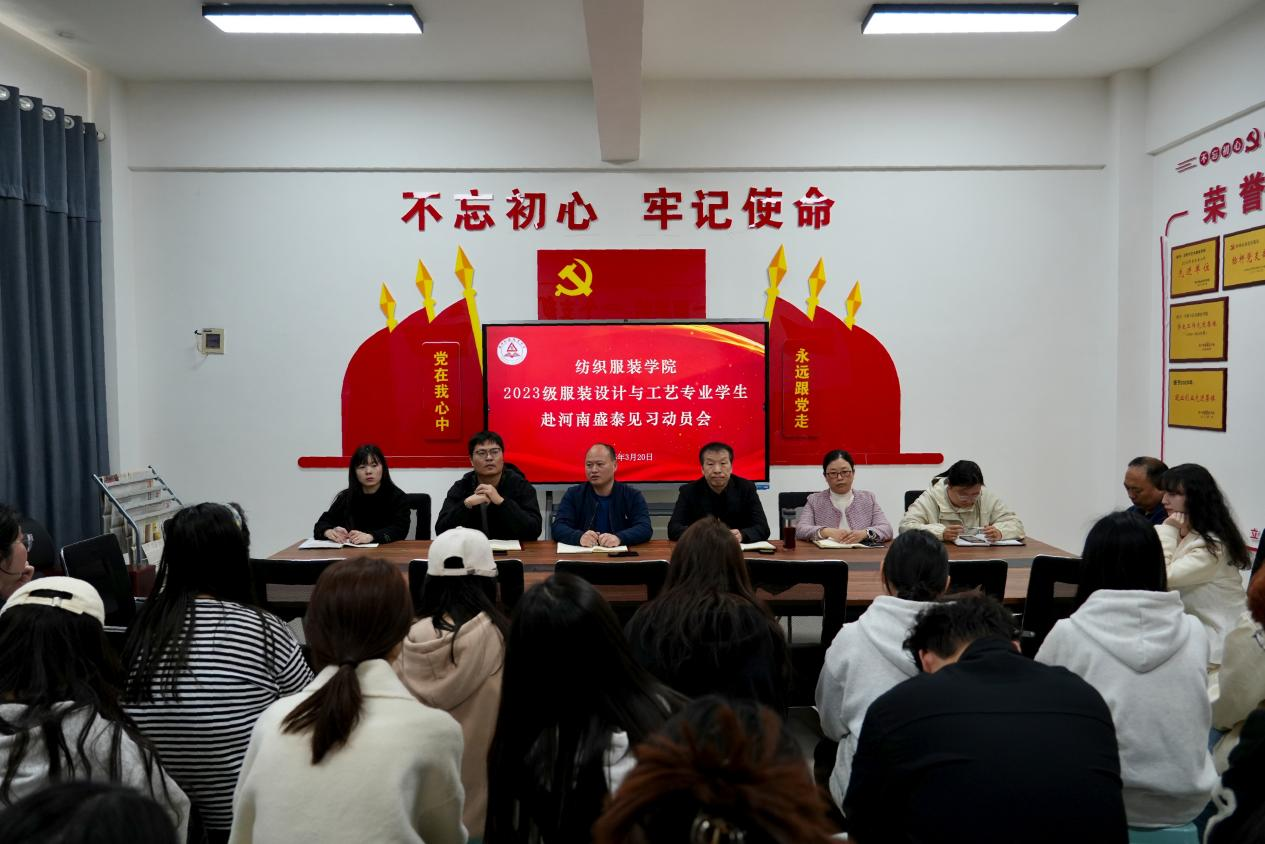 为进一步深化校企合作,提升学生专业实践能力,明确职业发展方向,3月20日,纺织服装学院在四楼党员活动室召开2023级服装设计与工艺专业学生赴河南盛泰见习动员会,学院全体班子成员、23级服装设计与工艺专业辅导员及全体学生参加会议,会议由院长高岐奎主持。