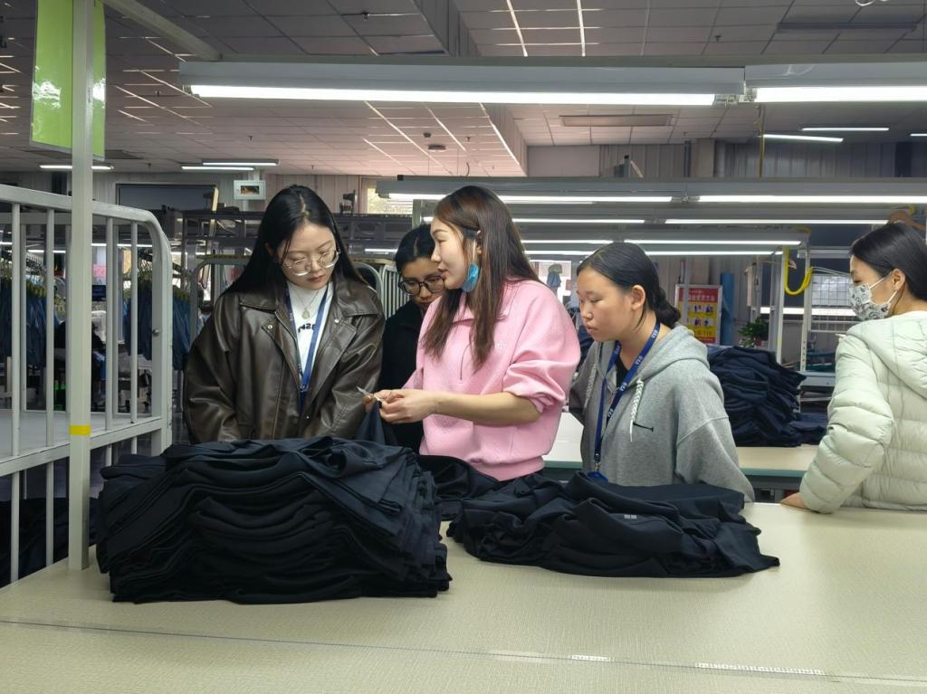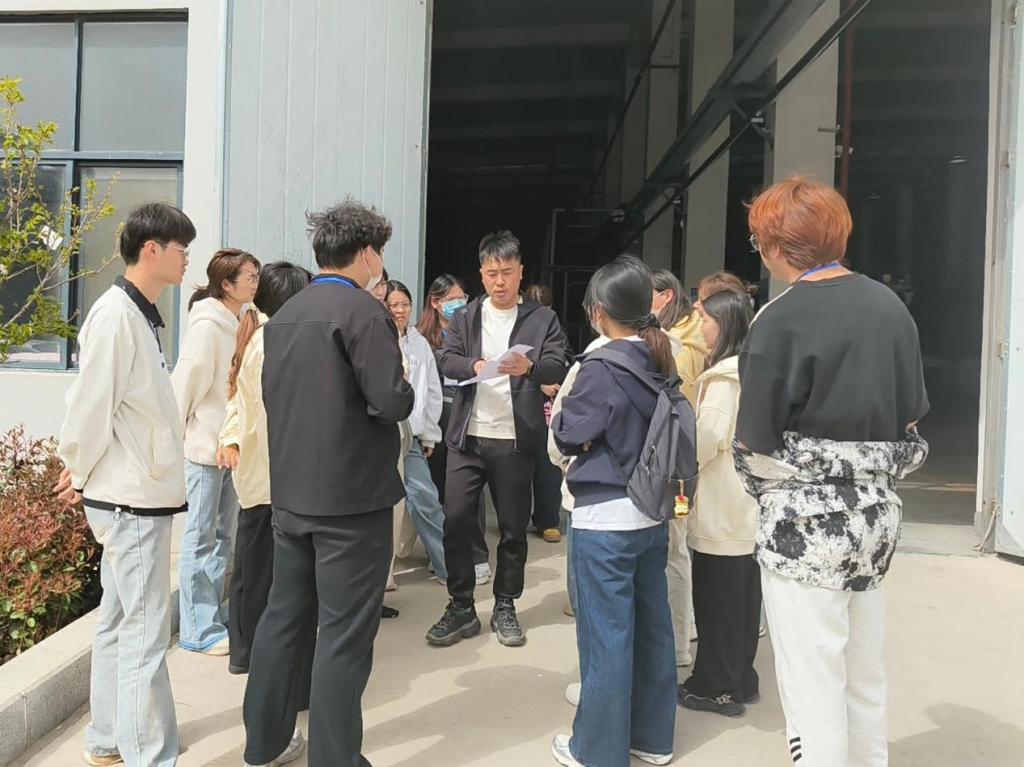 抵达企业后,企业负责人向师生们详细介绍企业情况、见习时间及具体见习内容,并耐心解答了学生们的疑问。随后,同学们深入生产一线,亲身体验从面料染整到服装后整理的制作全过程。通过实践操作,同学们不仅巩固理论知识基础,还收获实践经验,深刻体会到理论与实践相结合的重要性。