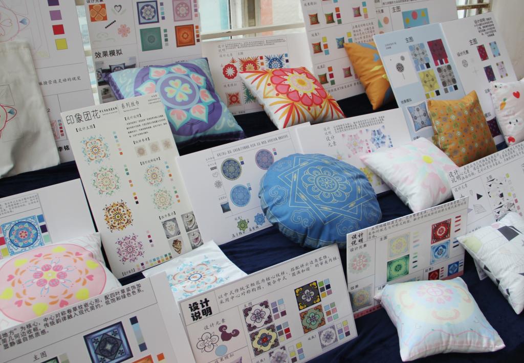 本次作品展共呈现53件精美作品。设计灵感汲取自丰富多元的生活元素,作品从设计、排版到打样,均由同学们自主完成;展品以帆布包、抱枕等织物类产品为主,兼具艺术观赏性与日常实用性,不仅实现了专业创作与生活美学的有机融合,更生动彰显了学生的创新思维与实践能力。